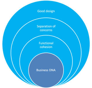- The core structure of the software should match the real business functions. A change in the business will be reflected with minimum effort and with maximum quality in these cases