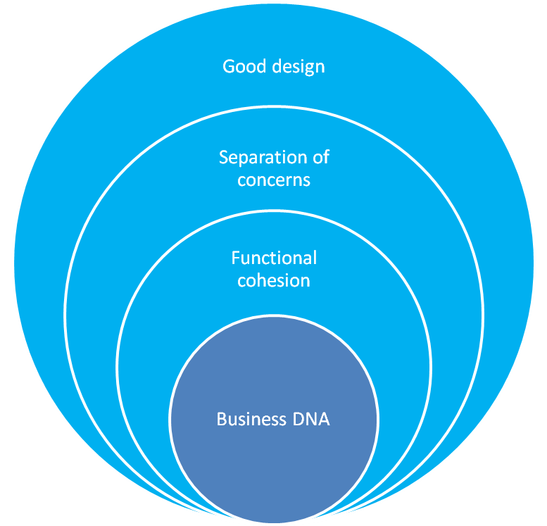 - The core structure of the software should match the real business functions. A change in the business will be reflected with minimum effort and with maximum quality in these cases