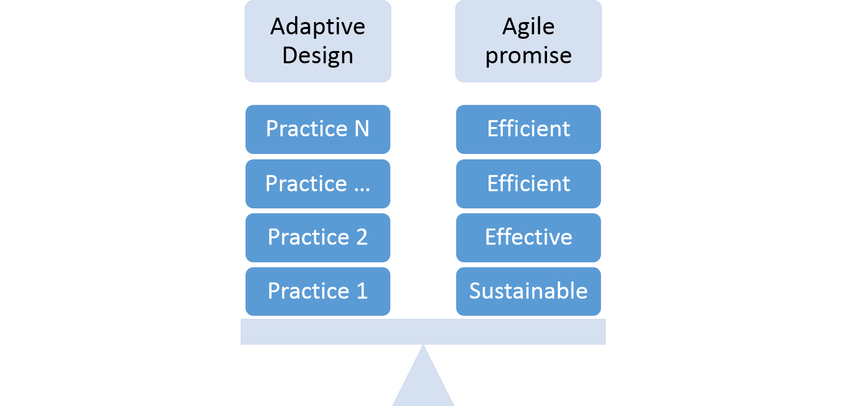 We need to restore the balance – to find an Agile Design as an Adaptive Design that keep the Agile Promise. For that we need to find good enough set of design practices that could provide and cover the main design aspects.